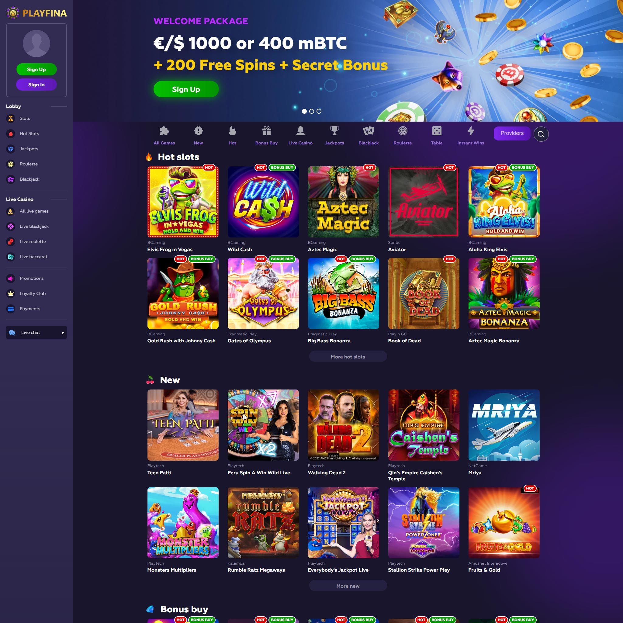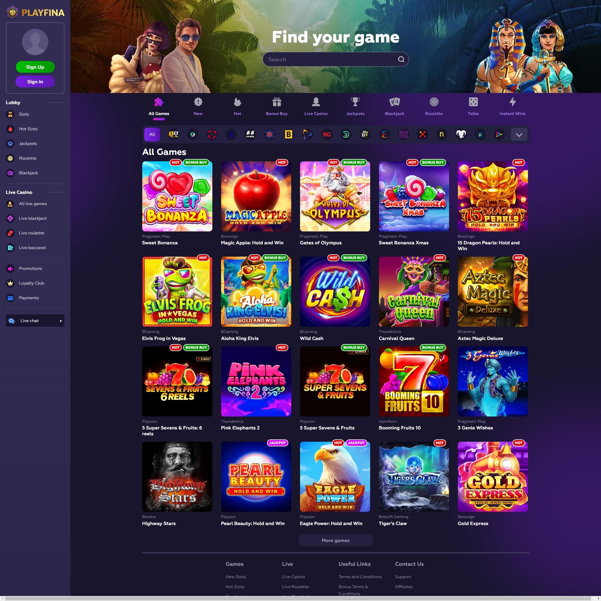 Playfina online casino offers a wide range of games to suit every player's taste. Whether you're a fan of classic slots, table games, or live dealer games, you'll find something to enjoy at Playfina.